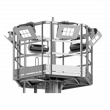 Стационарная корона мачты ВС-30 доступна в различных модификациях, позволяющих размещать от 12 до 24 светильников. Мачта предусматривает установку безопасных лестниц с ограждением и площадок обслуживания. Возможна полная комплектация электрикой, включая кабельные трассы и распределительные устройства.